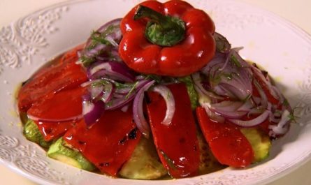 3. Приготовьте заправку: смешайте в миске лимонный сок и оливковое масло. Полейте салат заправкой.