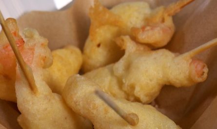 3. В отдельной миске смешайте панировочные сухари и кокосовую стружку. Запанируйте креветки в этой смеси.