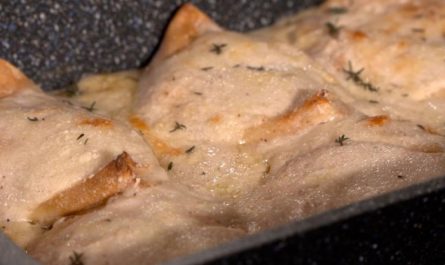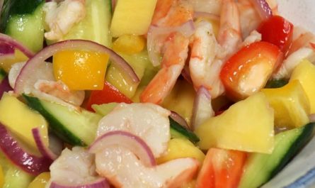 6. Полейте креветки соусом и украсьте листьями кинзы.